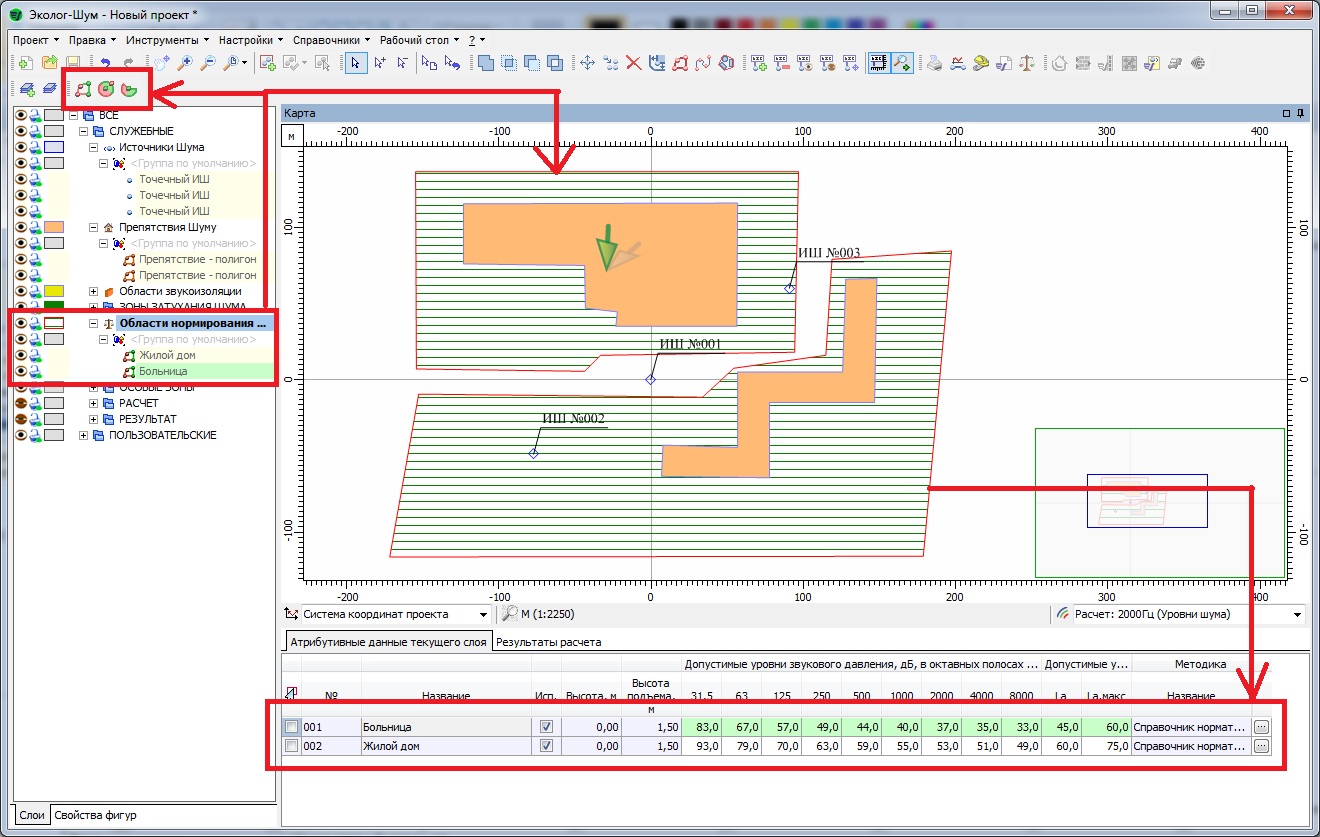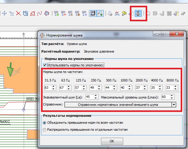 Начиная с версии 2.2 "Эколог-Шум" появился новый удобный инструмент "Нормирование шума".