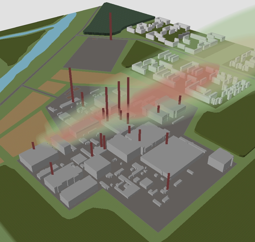 Пожалуйста, подскажите, как Вы сделали такую прекрасную визуализацию? За основу брали полилинии разных высот c определенным значением ПДК и иcпользовали что-то из инструментов 3D Analyst?
