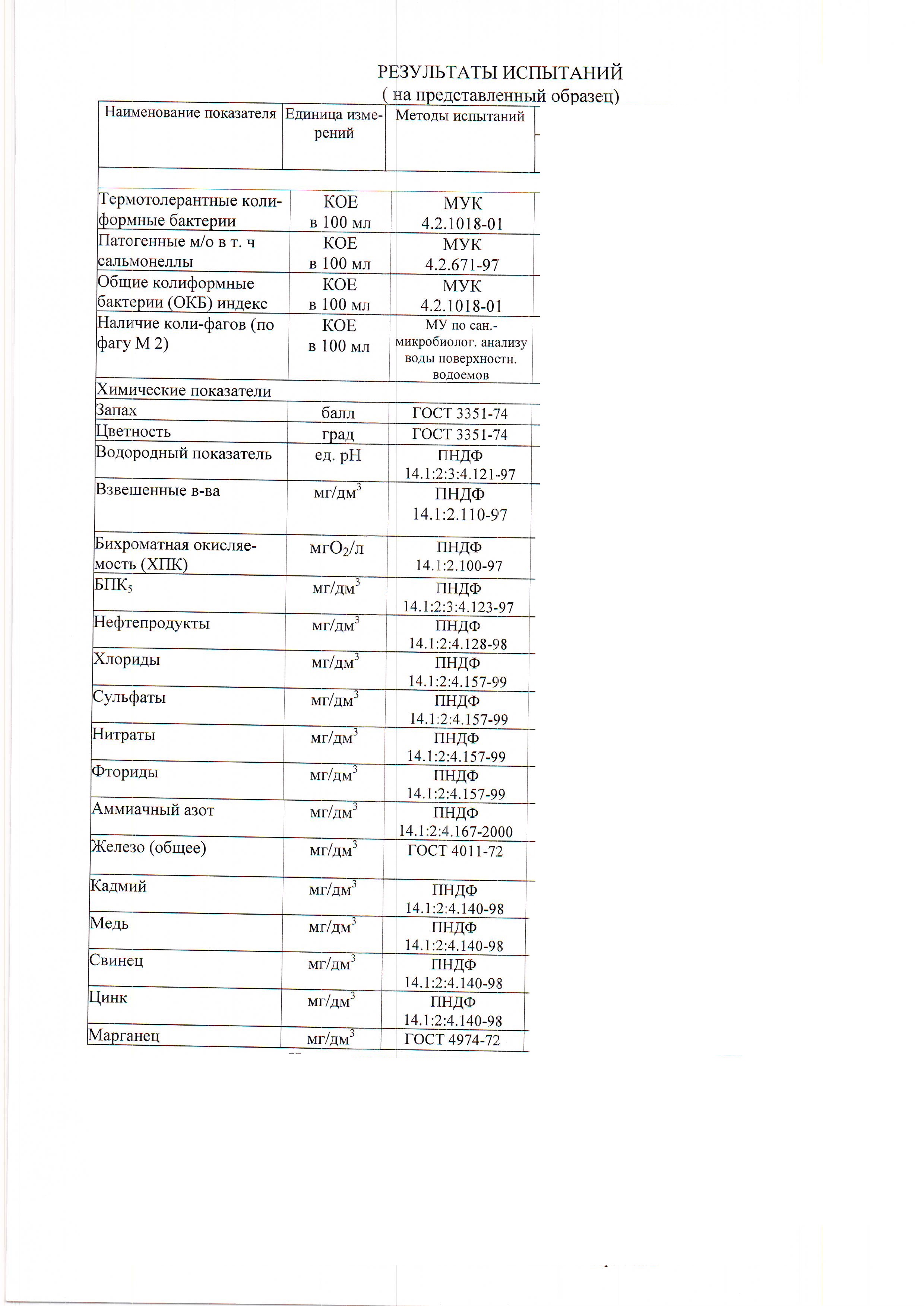 подземные воды: Химический анализ подземных вод на соответствие СанПиН 2.1.4.1074-01 и СанПиН 2.1.4.1175-02 (вода источников нецентрализованного водоснабжения)