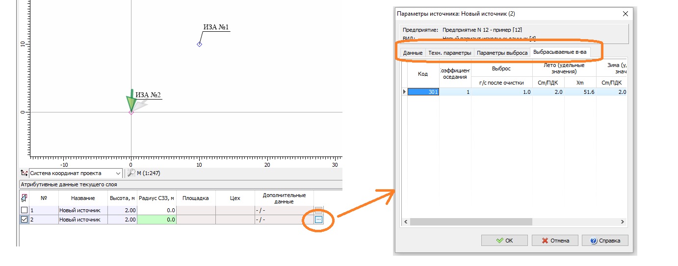 Вадим Зыков, воспользуюсь вашим скриншотом - нажатием на квадратик с троеточием можно получить инфу с характеристиками ИЗА не выходя из ГИС, это хорошо. И возможно было бы неплохо, если бы сделав активным слой "Расчет. Расчетные точки" в таблице с атрибутивными данными были не только Номер/Название/Тип, но и Высота, а самое главное такой же квадратик с троеточием, при тычке на который всплывало бы окошко с инфой по вкладам в расчетной точке по текущему выбранному веществу. А если бы эта таблица была при выборе в качестве активного слоя не "Расчет. Расчетные точки", а "Результат. Расчетные точки", это было бы не только прикольно, но еще и логично.