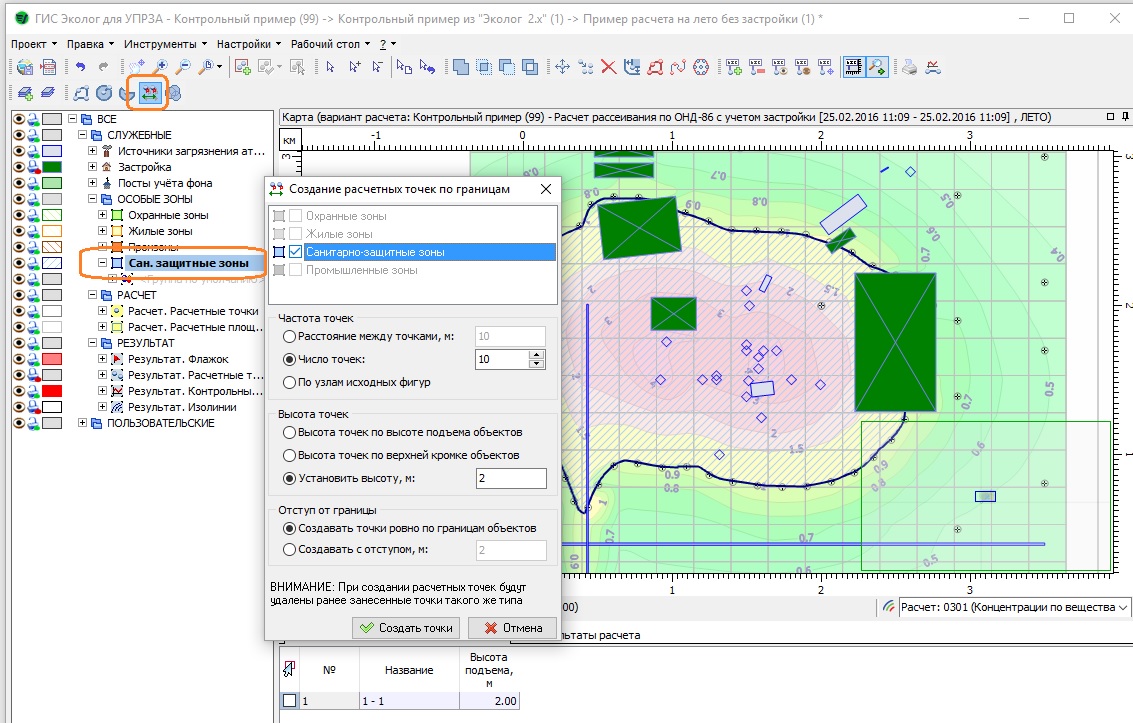 - Искусственно созданную СЗЗ по изолинии потом можно при необходимости удалить. Точки, созданные по этой зоне, останутся.