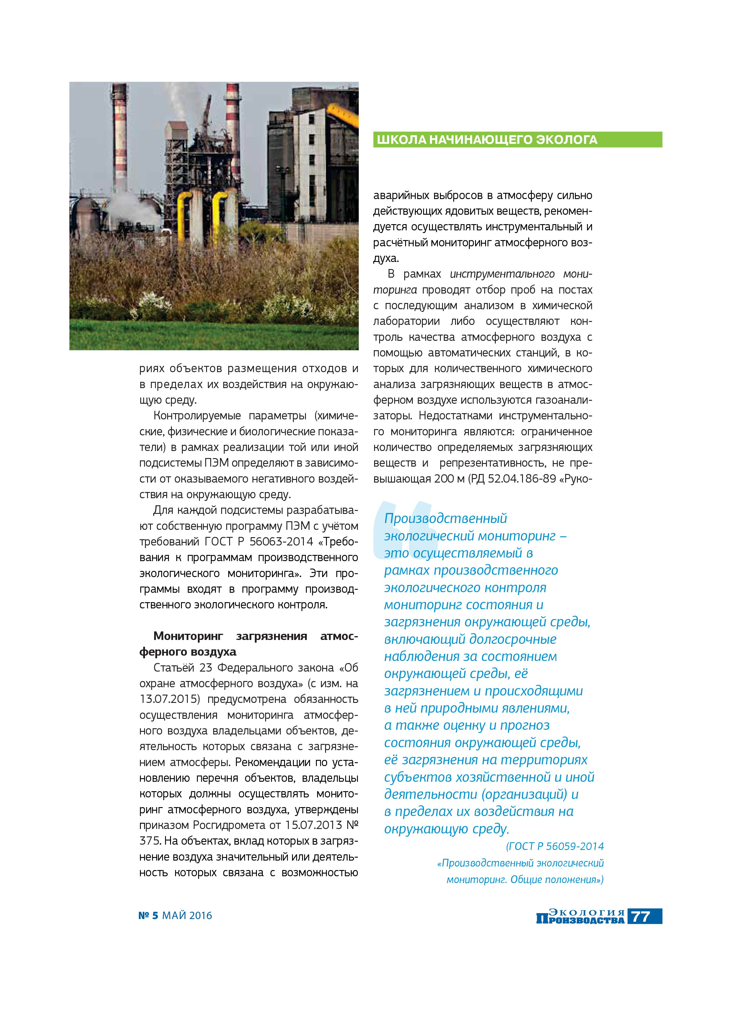 Статья "Производственный экологический мониторинг"