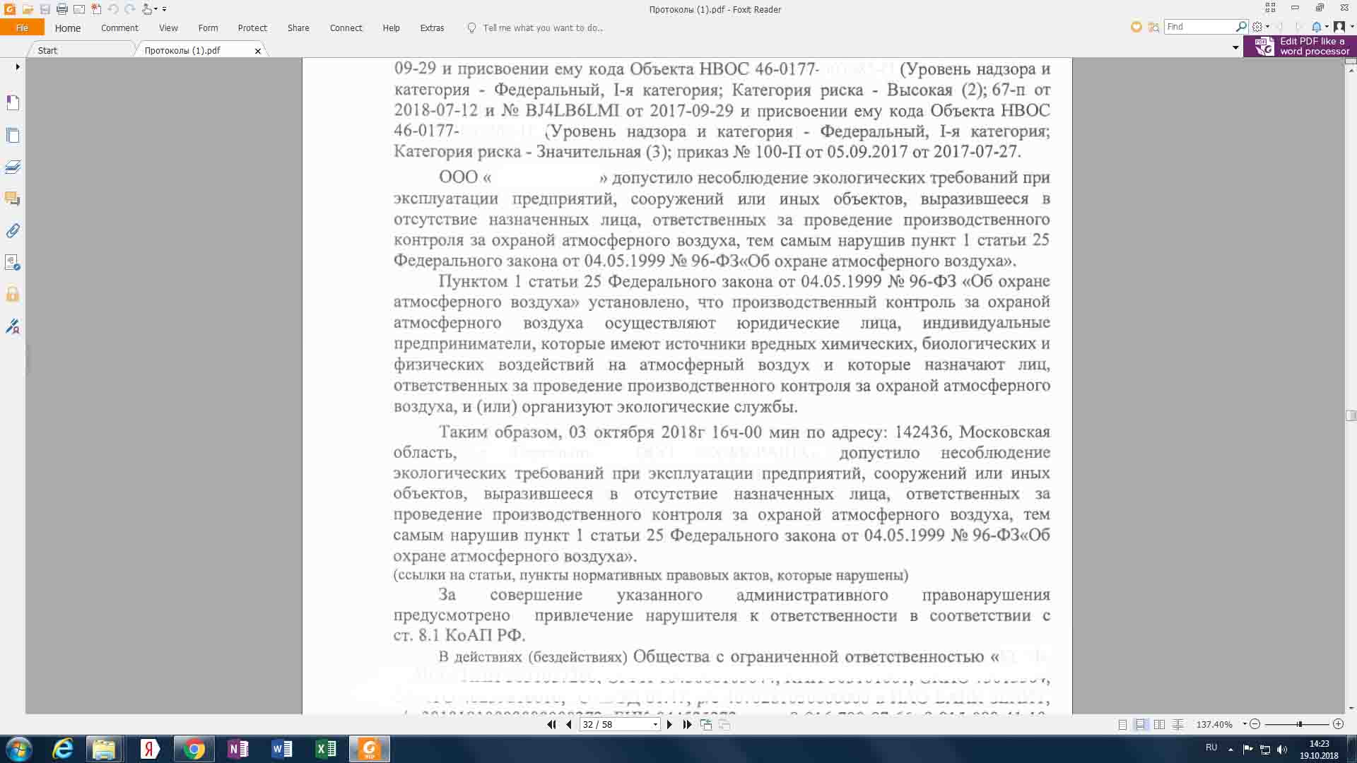 А не факт что ответственный за осуществление контроля за качеством атмосферного воздуха должен быть эколог, это может быть любой специалист официально назначенный директором.Наталья Викторовна писал(а): 19 окт 2018, 14:28 Это ответ ..... свежий протокол об административном правонарушении