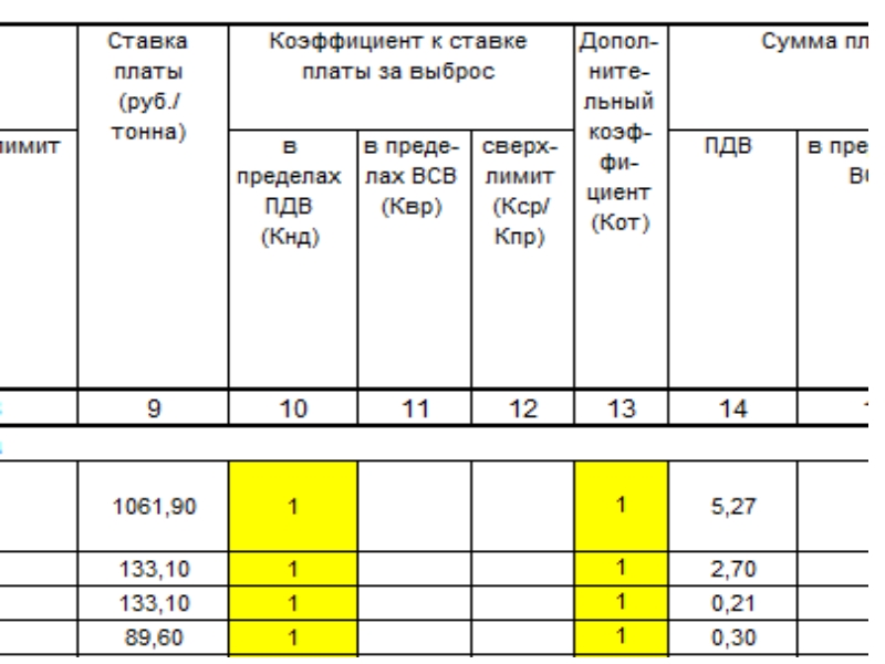 Это какие особо охраняемые ? Заповедники и подобное. То есть для Объекта в территории города даже 1.2 нет ? Получается что коэффициентов больше вообще нет, в том числе и инфляционных ? А для 90% перечня веществ и ставок то платы нет ?