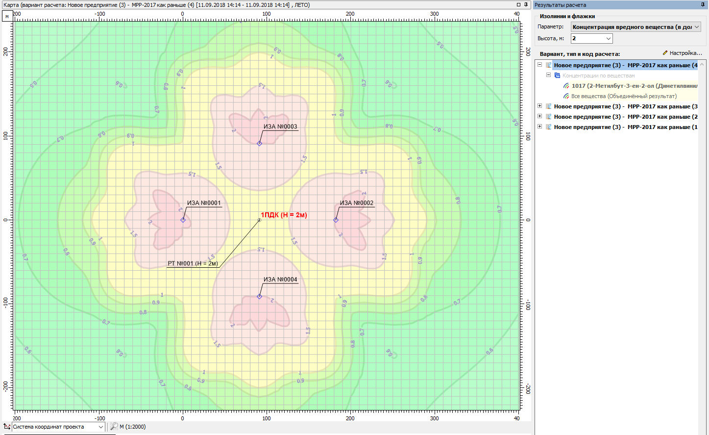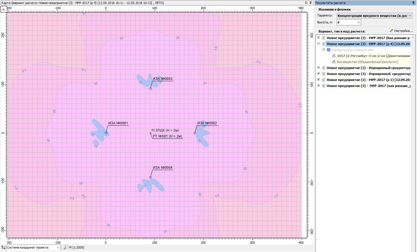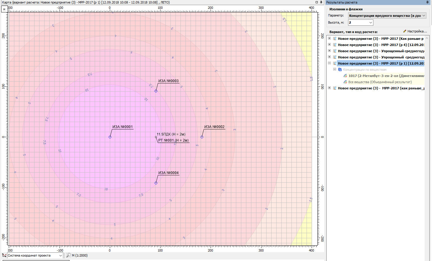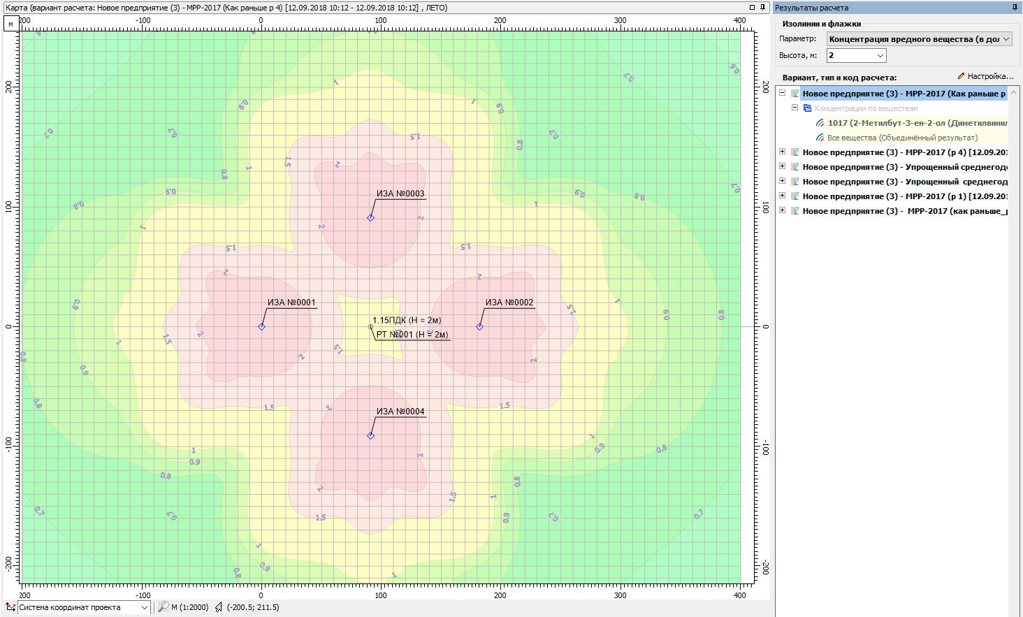 3. При одном источнике концентрация в точке для Упрощенных средних и для "Как раньше в ОДН-86 (См/10)" совпадают (ведь мы взяли круглую розу ветров). При дальнейшем росте количества источников результаты разнятся, тем больше, чем больше количество источников.