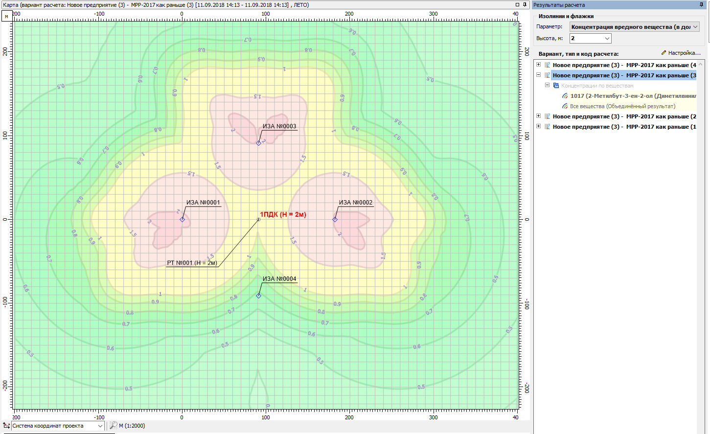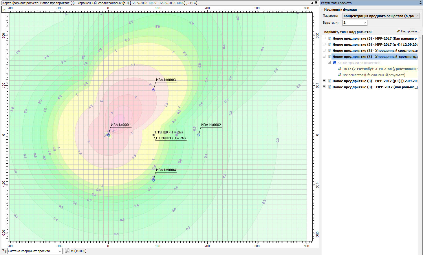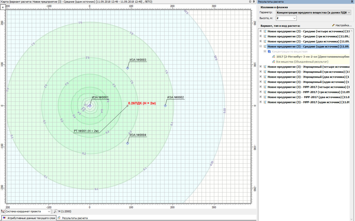 2. В Упрощенных средних наблюдается кумулятивный эффект, как в полноценных Средних. С ростом числа источников концентрация в точке увеличивается пропорционально количеству источников.