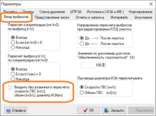 - настройка "Только стационарные ИЗАВ" влияет и на передачу данных в УПРЗА "Эколог";