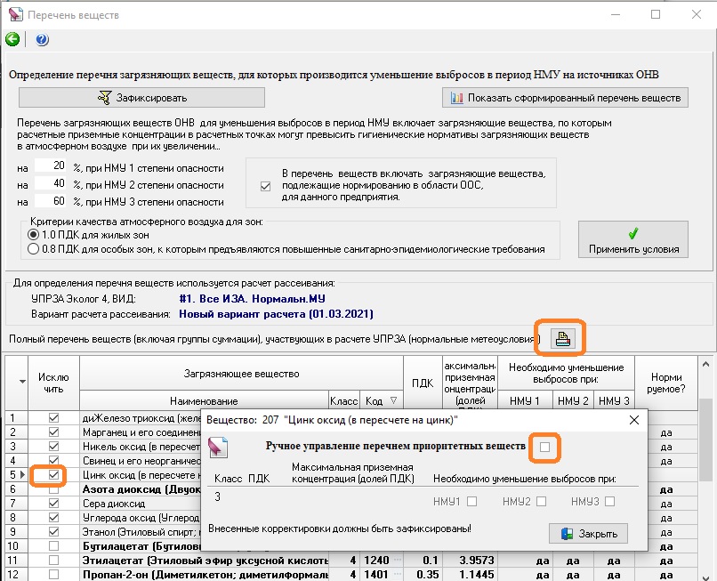 — в разделе "Определение перечня приоритетных загрязняющих веществ" добавлена возможность включить (исключить) любое вещество по усмотрению пользователя;