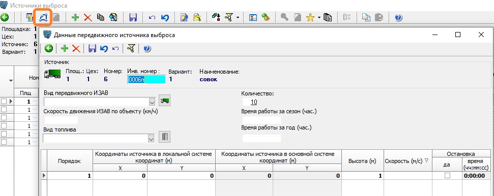В программах "Инвентаризация", "ПДВ-Эколог" и УПРЗА "Эколог" есть специальная форма, в которую вводятся дополнительные параметры передвижного источника. Часть из них нужна именно для расчета рассеивания. Например, траектория или скорость перемещения по отрезку траектории. Если вы хотите создать передвижной источник на карте, то его создание нужно начинать именно на карте, а не в таблице с тех. параметрами.