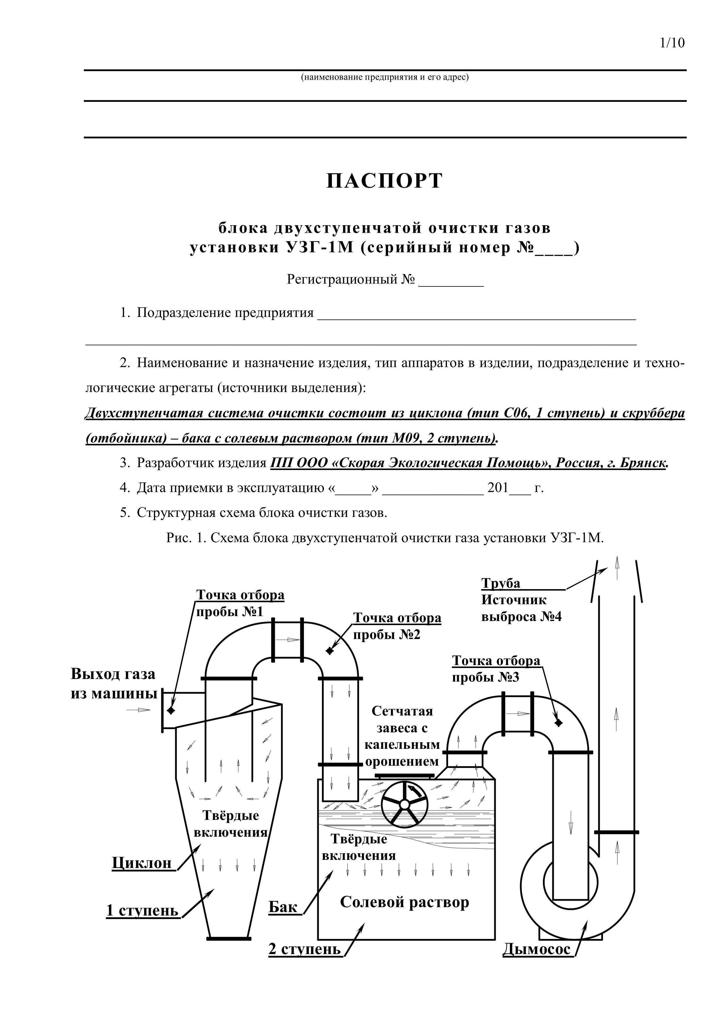 УЗГ снабжена блоком очистки газов, смотрите заводской паспорт на этот блок. Вот, например, наш блок очистки газов, там даже указаны точки отбора проб, где их нужно сделать. Теоретически, конечно, возможно, что у вас УЗГ без блока очистки, но в этом случае будут большие проблемы со здоровьем у операторов установки :((( Ну и самое главное - "невозможность" сделать замеры приведет вас вообще в тупик, так как "разрешенной" методики расчета выбросов от такой установки нет, а выбросы как-то считать все равно нужно