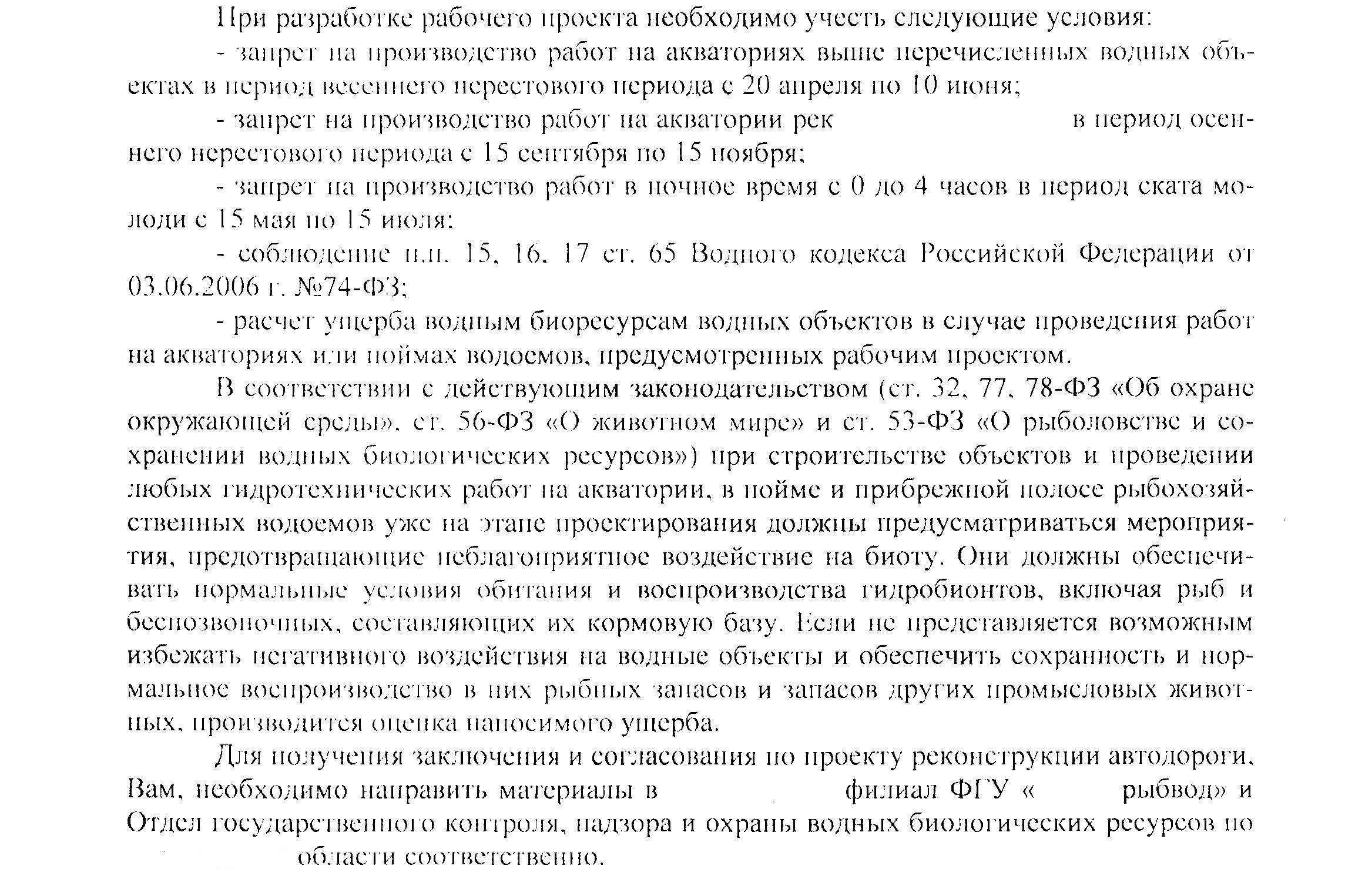 elika, ZavodilA Если у вас нет работ в русле реки, исключены сбросы ЗВ, то не нужно (С хорошим соответственно обоснованием). Если все таки планируется сброс ЗВ и работы в пойме акватории, то при заказе справки о рыбохозяйственных характеристиках объекта приемника сточных вод, то "рыбники-водники" пишут необходимые мероприятия которые нужно осуществить с предоставлением проекта к ним на проверку, где они поставят свою визу!!!!