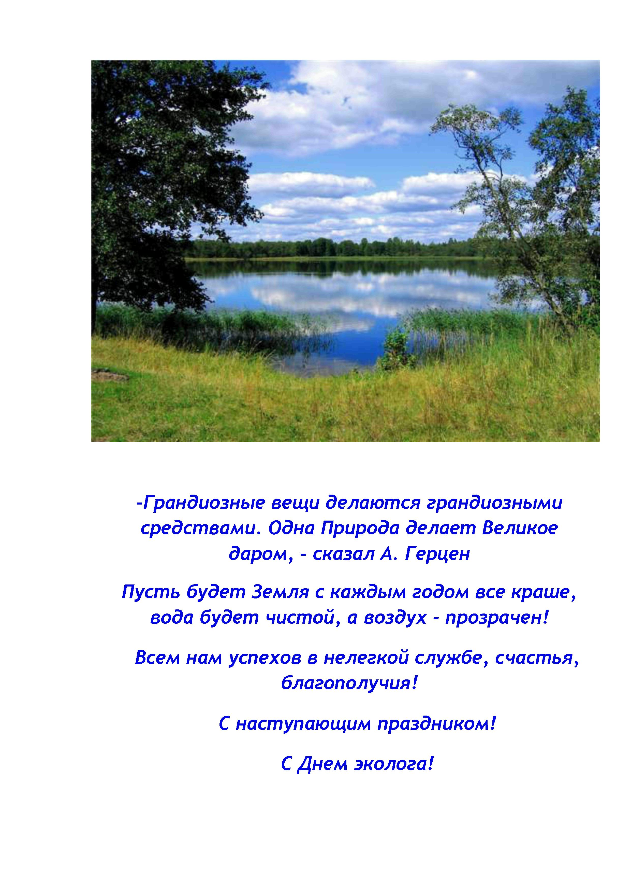 Уважаемые коллеги, поздравляю вас с профессиональным праздником – Днем эколога! Желаю вам успехов в работе и всего самого доброго!