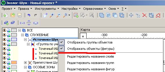 Далее можно будет раскрыть дерево слоев (например в слое "Источники Шума", нажать на плюс и на плюс "Группа по умолчанию").
