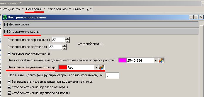 Вы можете самостоятельно настроить цвет линий, которым будут помечаться выделенные объекты на карте (по умолчанию "розовый"). Делается это через меню "Настройки" - "Настройки программы" - "Отображение карты" - "Цвет линий выделенных фигур". Рассмотрим третий способ. Просто кликая мышкой в поле атрибутивных данных. Возможно применение привычных комбинаций с применением Shift и Ctrl