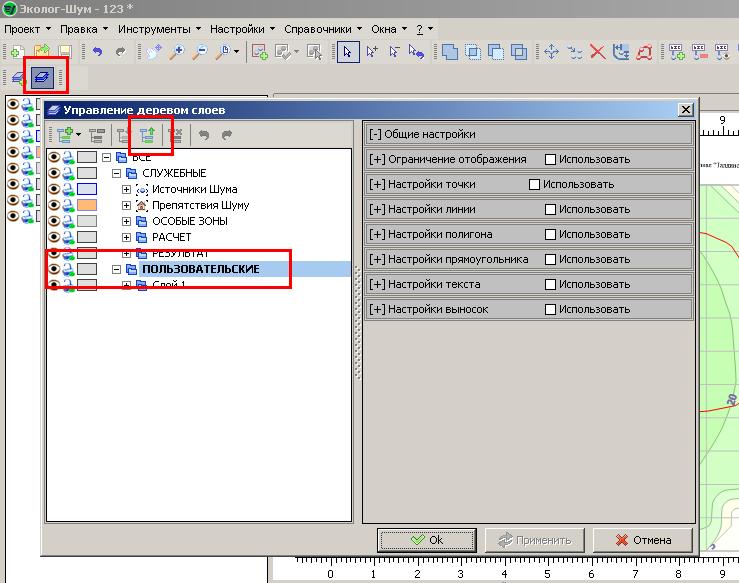 Вы можете изменять порядок вывода слоем на кран через окно "Управление деревом слоем".