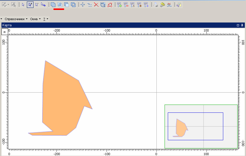 Теперь посмотрим новое возможности работы с полигонами. На рисунке показаны два полигона, а на верху объведены инструменты работы с полигонами. Слева на право: объединение полигонов, пересечение полигонов, вычитание полигонов, удаление пересекающихся частей полигонов.