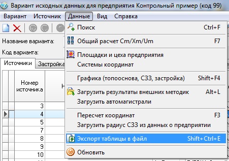 Меню "Данные" - "Экспорт таблицы в файл"