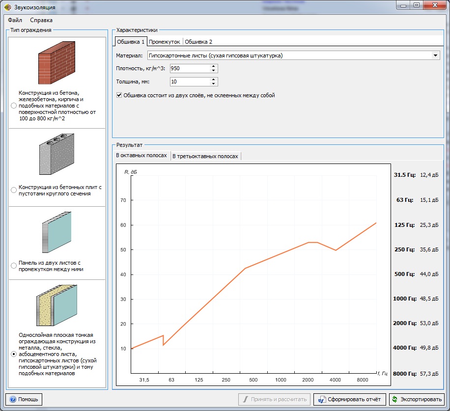 Расчёт звукоизоляции