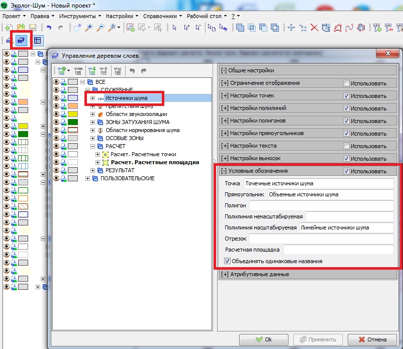 Напишите, пожалуйста, подробнее как вы хотели бы что бы программа добавляла или исключала информацию из легенды (промышленная зона, СЗЗ, точечный, линейный источник, препятствия шума).