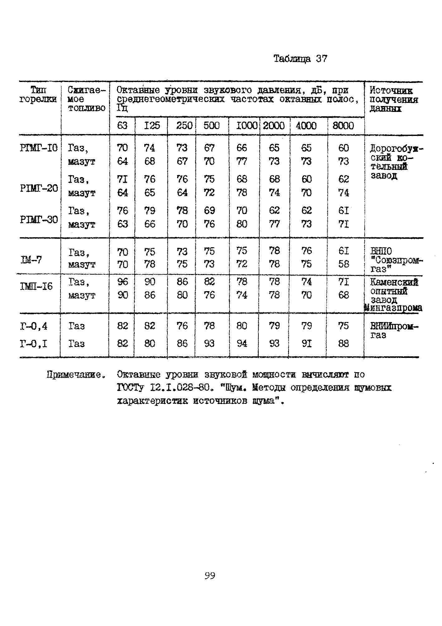 Шумовые характеристики горелок