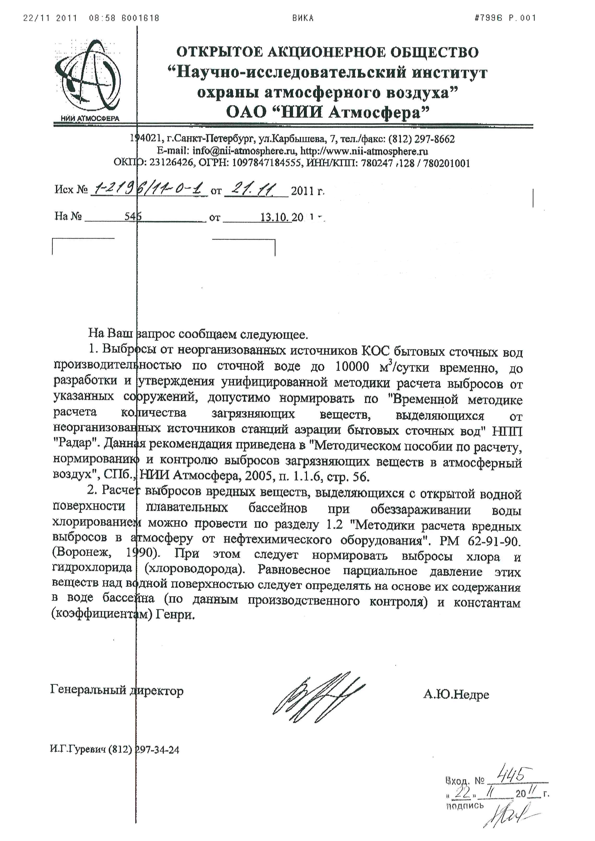 По какой методике считать выбросы от хлорирования воды посмотрите в прикрепленном письме.