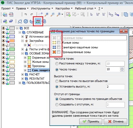 через ГИС теперь делается. А на если выбрать слой Промзоны, рядышком будет кнопка построения СЗЗ от промзоны.SEkaterinaS писал(а): отсутствие возможности выставить автоматом расчетные точки по границе зон. Подскажите, если ли надежда, что в скором времени этот недостаток исправится?