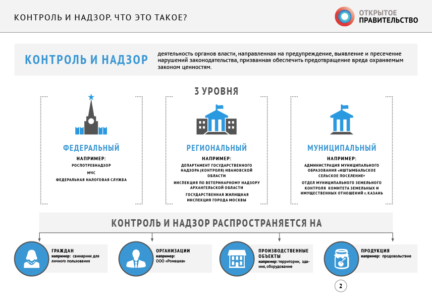 - определения понятий федерального государственного контроля (надзора), регионального государственного и муниципального контроля (надзора);