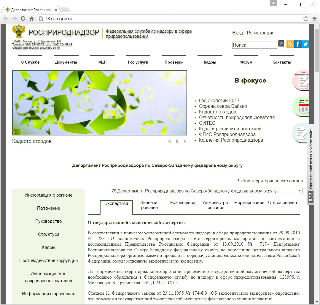 В Департаменте Росприроднадзора по СЗФО сменился адрес сайта