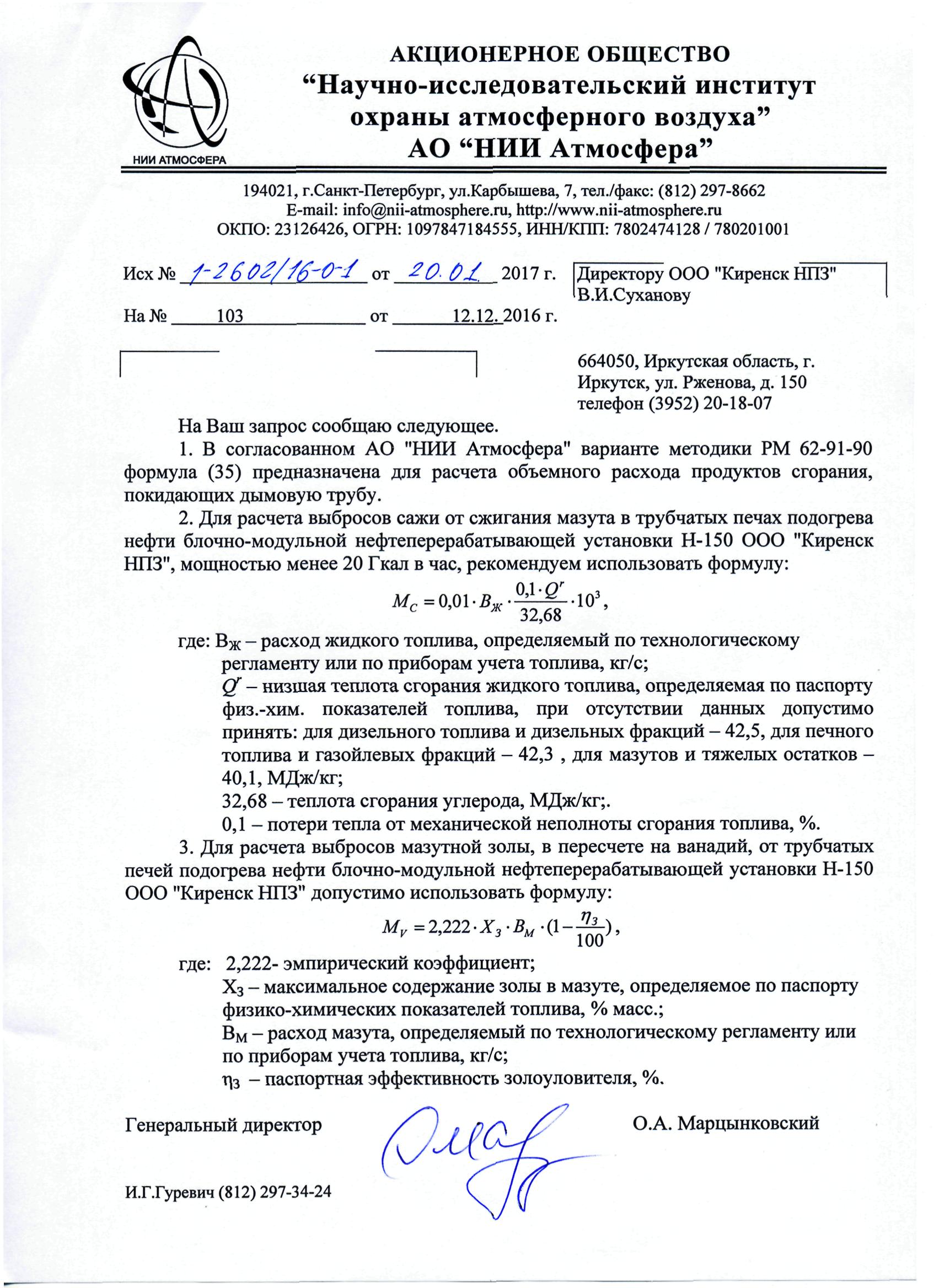 Вот такой ответ получили от АО НИИ "Атмосферы"....Вячеслав, выложенный вами вариант воронежской методики они, оказывается, не согласовывали...да и предлагаемые формулы для расчета сажи и мазутной золы от трубчатых печей мини НПЗ ...я в методике по котельным как то не встречал...