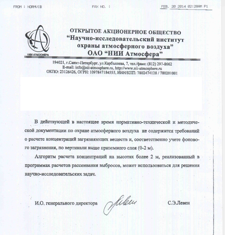 Звонили и писали и в ГГО, и в свои Гидромет, и в НИИ Атмосфера: ответ один - в действующей нормативно-технической и методической документации по ООС нет требований о учете фонового загрязнения по вертикале выше приземного слоя (0-2 м). И что можно тот же фон что на 2 метрах, применять и к остальным высотам.