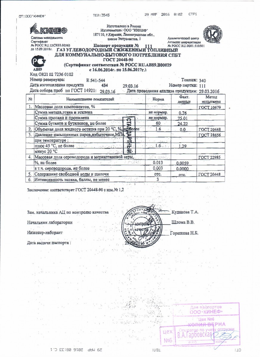 Состав можно попросить у предприятия которое поставляет газ. Как правило это договор на поставку газа в газовых баллонах . У них должны быть данные документы и паспорт на газовый баллон