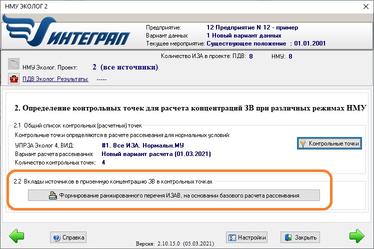 — добавлена отчетная форма с увеличенными (по умолчанию на 20, 40 и 60%) концентрациями загрязняющих веществ в контрольных точках — поможет обосновать отсутствие необходимости в проведении мероприятий при НМУ;