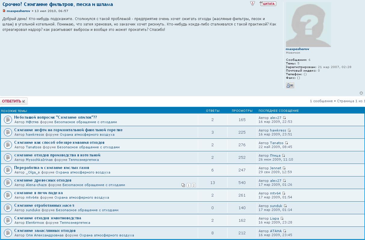Re: Срочно! Сжигание фильтров, песка и шлама
