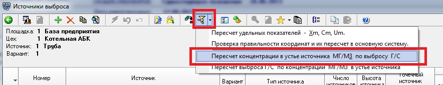 Попробуйте на вкладке "Список источников выбросов" воспользоваться кнопкой "Процедуры автоматического пересчета...", она вверху вторая слева.Marina-Perm писал(а):Столкнулась с той же проблемой: концентрацию не считает! "Пересчет концентрации мг/м3 по выбросу г/с" - "Всегда". Установлено. Что я делаю не так?