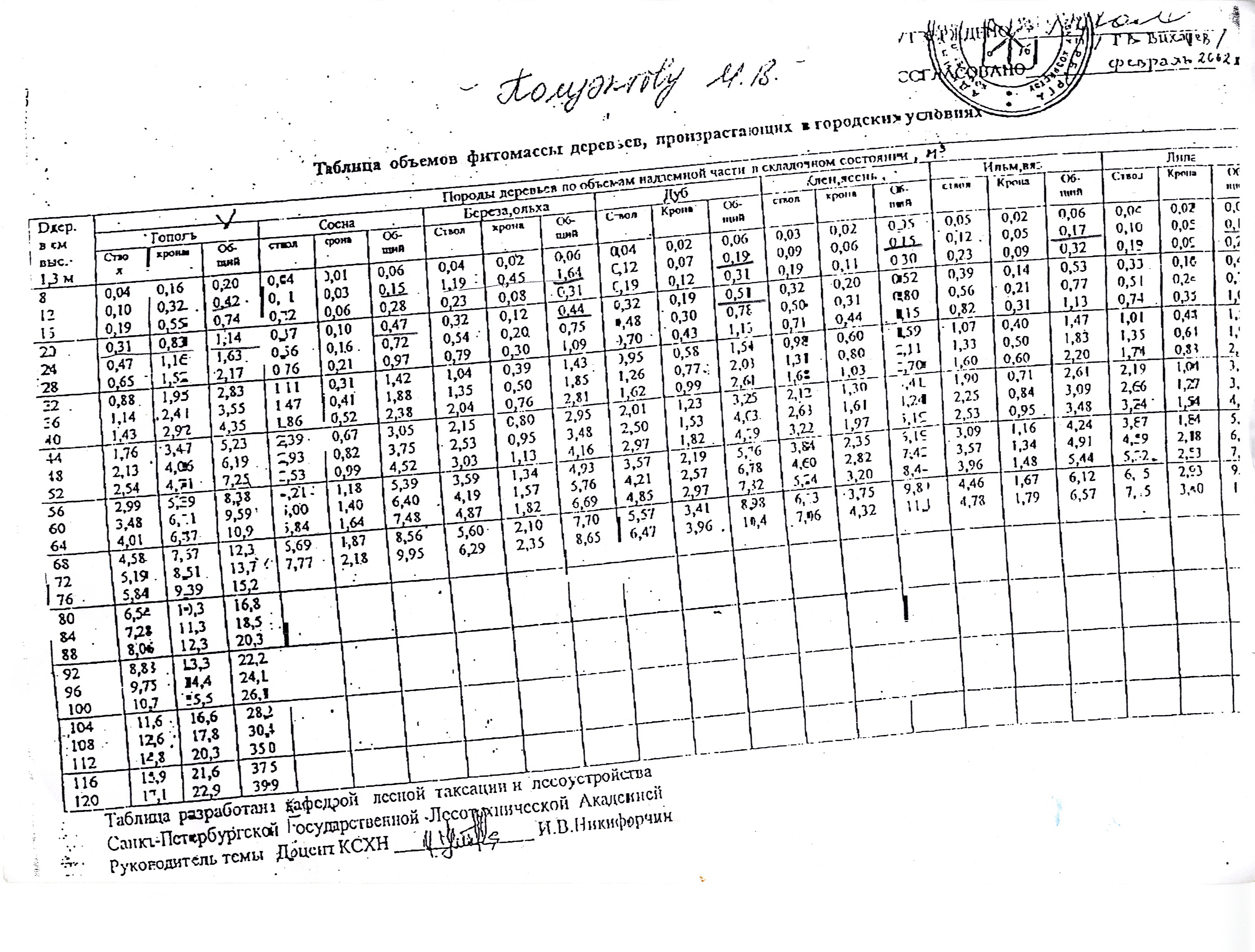 Часто приходится считать образование отходов для различных проектов, на основании данных актов УСПХ (о количестве деревьев, подлежащих вырубке/обрезке) и одной-единственной таблицы, составленной и согласованной когда-то кем-то в СПб ЛТА: